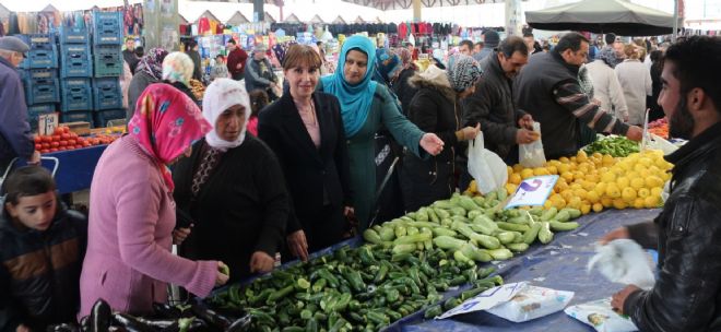 Ağrı Doğubeyazıt doğumlu olan ve 34 yıldır İzmir Karşıyaka’da yaşayan Nermin Alpdoğan, Kadınlar Günü dolayısıyla Menemen’e bir ziyaret gerçekleştirdi. Pazarda kadınlarla sohbet eden Alpdoğan, sorunları dinleyerek notlar aldı.