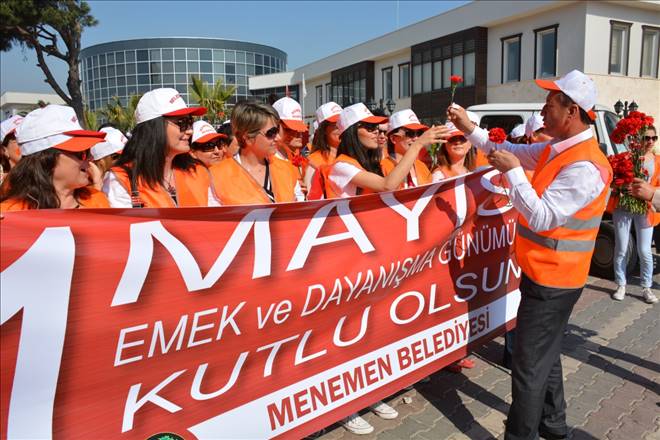 1 Mayıs Emek ve Dayanışma Günü Menemen'de bu yıl da büyük coşkuyla kutlandı. Menemen Belediyesi önünde toplanan 500 kadar Belediye çalışanının ellerinde Türk bayrakları ile katıldığı kortej yürüyüşü öncesinde Menemen Belediye Başkanı Tahir Şahin, Belediye çalışanlarına karanfil dağıtarak 1 Mayıs Emek ve Dayanışma Günlerini kutladı.