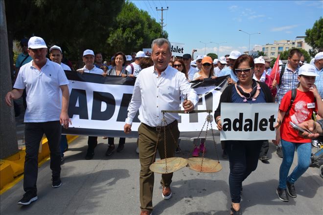 Sabah saat 10.30 sıralarından Akhisar´ın Hürriyet Mahallesi´nden başlatılan yürüyüşte, İzmir ve Manisa´dan partililer el ele omuz omuza adalet için yürüdü. CHP İzmir İl Başkanı Asuman Ali Güven´in İl Başkan Yardımcılarıyla birlikte katıldığı adalet yürüyüşüne; CHP Manisa İl Başkanı Halil Tokul ile CHP´nin Menemen, Aliağa, Karabağlar, Soma, Kırkağaç ve Saruhanlı İlçe Başkanları da katıldı. Yaklaşık bin kişinin katıldığı yürüyüşte, CHP´li yöneticilerle birlikte ön sırada adalet için yürüyen Menemen Belediye Başkanı Tahir Şahin, Akhisarlıları karanfiller sunarak selamladı. Adaletin simgesi terazi eşliğinde gerçekleştirilen yaklaşık 5 kilometrelik yürüyüşte; ?Gün gelecek, devran dönecek, AKP halka hesap verecek.?, ?Adalet, adalet, adalet??, ?Türkiye laiktir, laik kalacak?, ?Susma, sustukça sıra sana gelecek?, ?Vekiller içeride, damatlar dışarıda? sloganları atıldı. Adalet için yola çıkanları Akhisarlılar, alkışlarla destekledi.