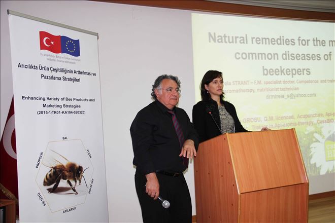 Sonrasında arıcılık alanında bilimsel anlamda ülkemizin duayen ismi emekli öğretim üyesi Prof. Dr. Muhsin Doğaroğlu söz aldı. Arı ürünlerinin sağlık amaçlı kullanımını anlatan apiterapi konusunda bilgi verdi. Bunların toplum sağlığını korumak yanında ilaç bağımlılığını da azalttığını sözlerine ekledi. Doğru şekilde, doğru dozda ve doktor kontrolünde uygulanması gerektiğinin altını özenle çizdi. Tıp doktoru Dr. Mirela Strant da, hangi arı ürünün neye iyi geldiğini tek tek izah etti. Arıcılar için yanık ve sokma karşısında yapılacakları ifade etti.