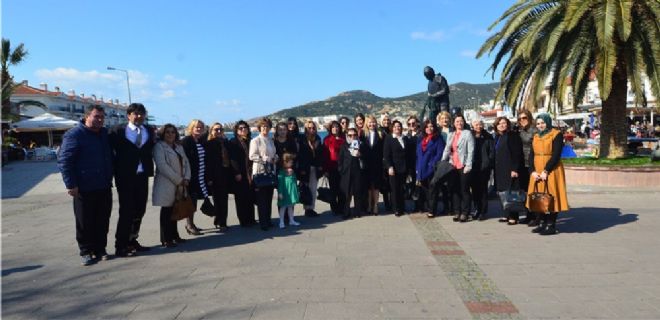 Yeni Foça’dan sonra Kozbeyli Çapkınoğlu Konağı’na da giden başkan eşleri burada kahve içip dinlendiler. Ardından Foça’ya geçen konuklar Foça’nın tarihi ve doğal dokusu karşısında moral depoladılar.
