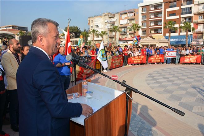 Cumhuriyet Meydanı´nda gerçekleşen festivalin açılış töreni; Menemen Belediye Başkanı Tahir Şahin´in Atatürk Anıtı´na çelenk sunumu ve ardından saygı duruşunda bulunularak İstiklal Marşımız okunmasıyla başladı.