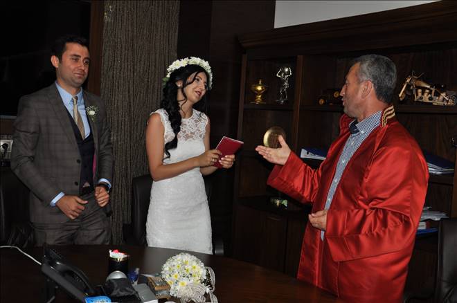 Sevgi – Ulaş çiftçinin nikahları, 2015 yılı başından bu yana hizmet veren yeni Belediye Hizmet Binası Başkanlık Makamında kıyılan ilk nikah olma özelliği taşıyor.