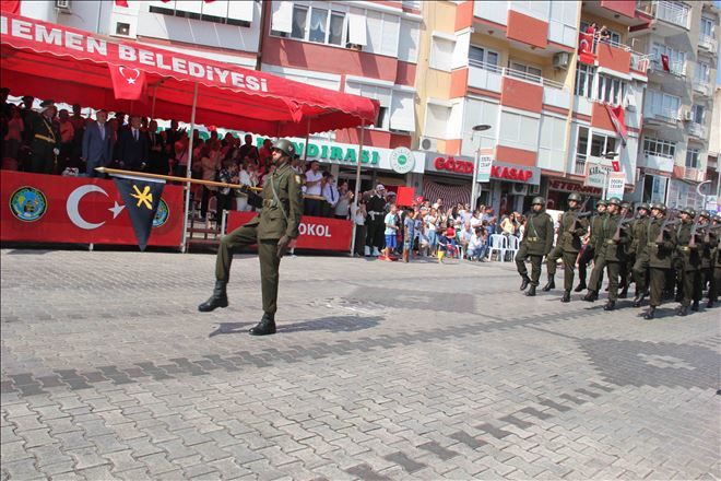 Menemen Anadolu Lisesi karma zeybek ekibi halk oyunları sergiledi. Askeri birlikler, gaziler ve bir grup öğrencinin tören geçişi ile program son buldu.