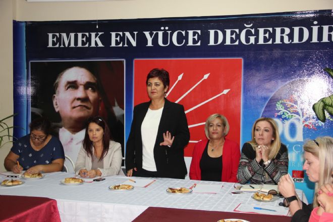 Ardından CHP İl Kadın Kolları Başkanı Özgün Utku yaptığı konuşmasına, “Danışma Kurulu Toplantılarımızı Menemen’den başlattık. Yine seçim sürecindeyiz. Kazanacağız başka çaresi yok. Şu netlikte ifade etmek isterim ki, bir kadın için bu seçimi kazanmamak gibi bir seçenek olmaması lazım. Çünkü bunlar siyaseti kadını eve kapatmak, kadınları cahilleştirmek, üç çocuk-beş çocuk üzerinden yürütüyor. O nedenle bu seçim özellikle biz kadınlar için çok daha önemlidir. Tek meselemiz padişahı koltuğundan indirmek olmalı” sözleriyle başladı.