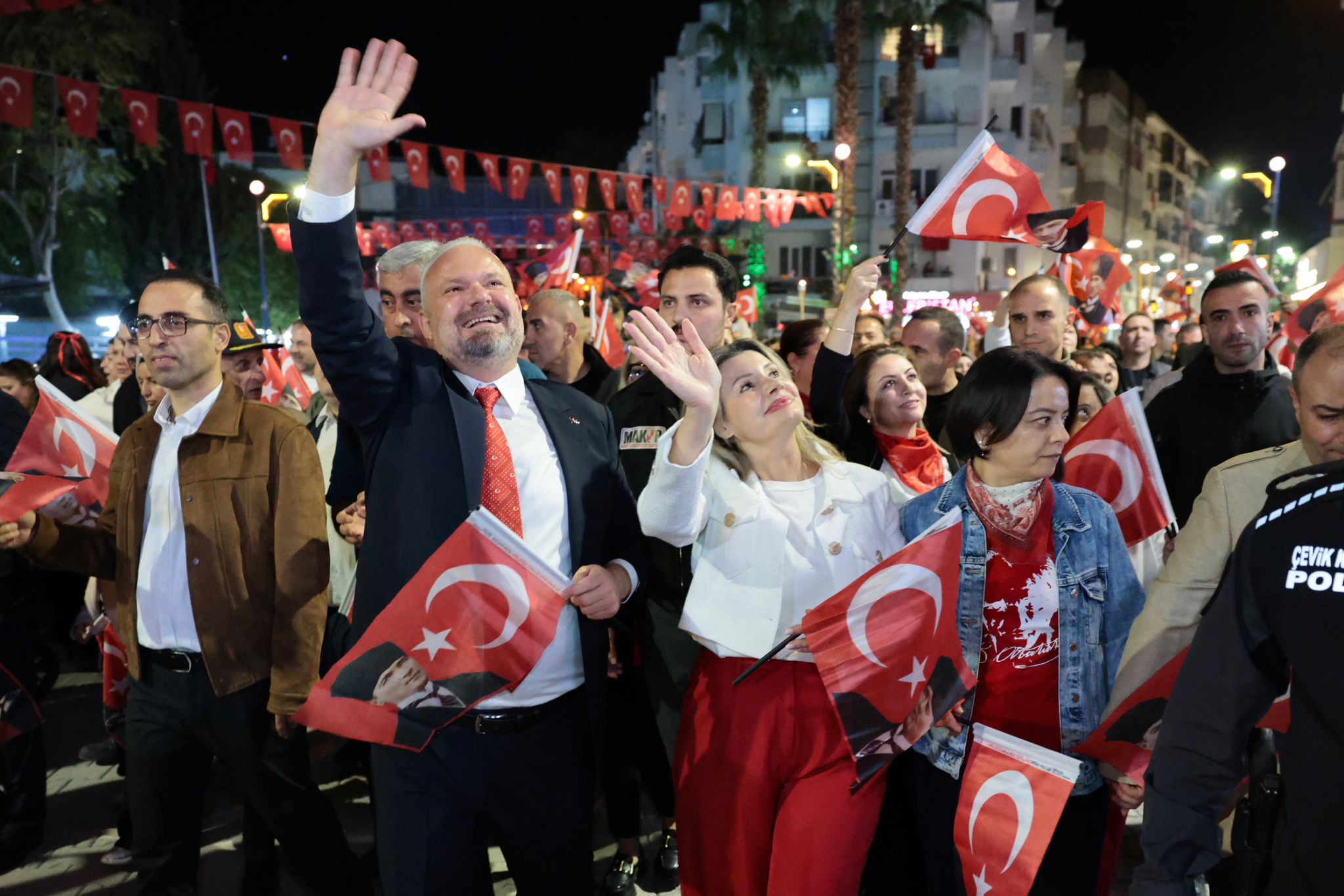 Menemen Belediye Başkanı Aydın Pehlivan'ın konuşması sonrası kutlamalar havai fişek gösterisiyle son buldu.
