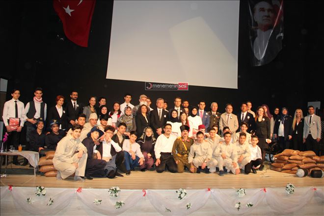 18 Mart Şehitleri Anma ve Çanakkale Zaferi´nin 104´üncü yıldönümü etkinlikleri kapsamında ilçemizde ilk olarak Askeri Şehitlikte anma programı gerçekleştirildi. Menemen Kaymakamı Mustafa Özkaynak, Garnizon Komutanı İbrahim Ethem Çağcı ve Menemen Belediye Başkanı Tahir Şahin tarafından şükran çelengi sunuldu.