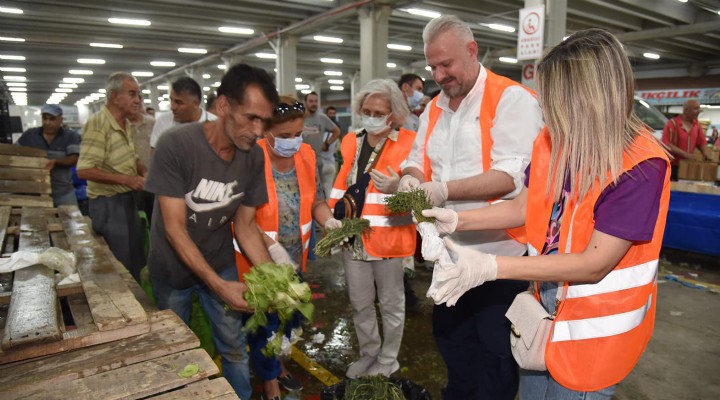 Verimli geçen seminerin ardından Baybara, kendisine eşlik eden Filiz Pehlivan, başkan yardımcıları, belediye personelleri ve diğer katılımcılarla birlikte Seyrek’te kurulan pazar yerine giderek, kompost haline dönüştürmek üzere sebze ve meyve atıklarını topladı.