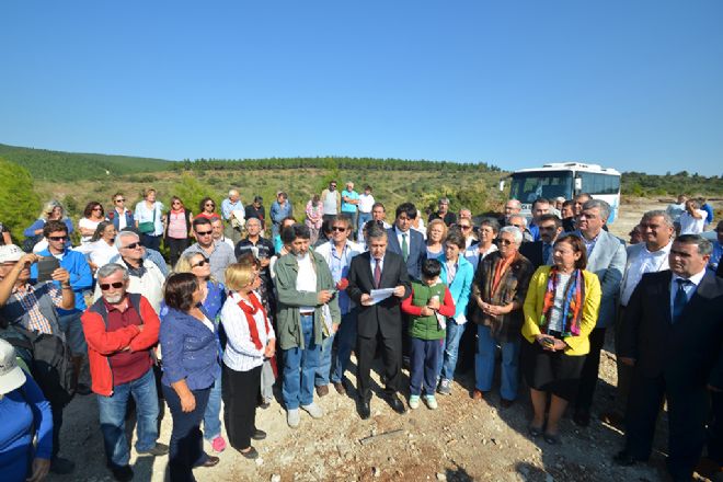 Foça Ilıpınar Mahallesi Orman Alanında yapılan ağaç katliamına dur diyen kalabalık daha sonra kesim yapılan alanda incelemede bulundu.
