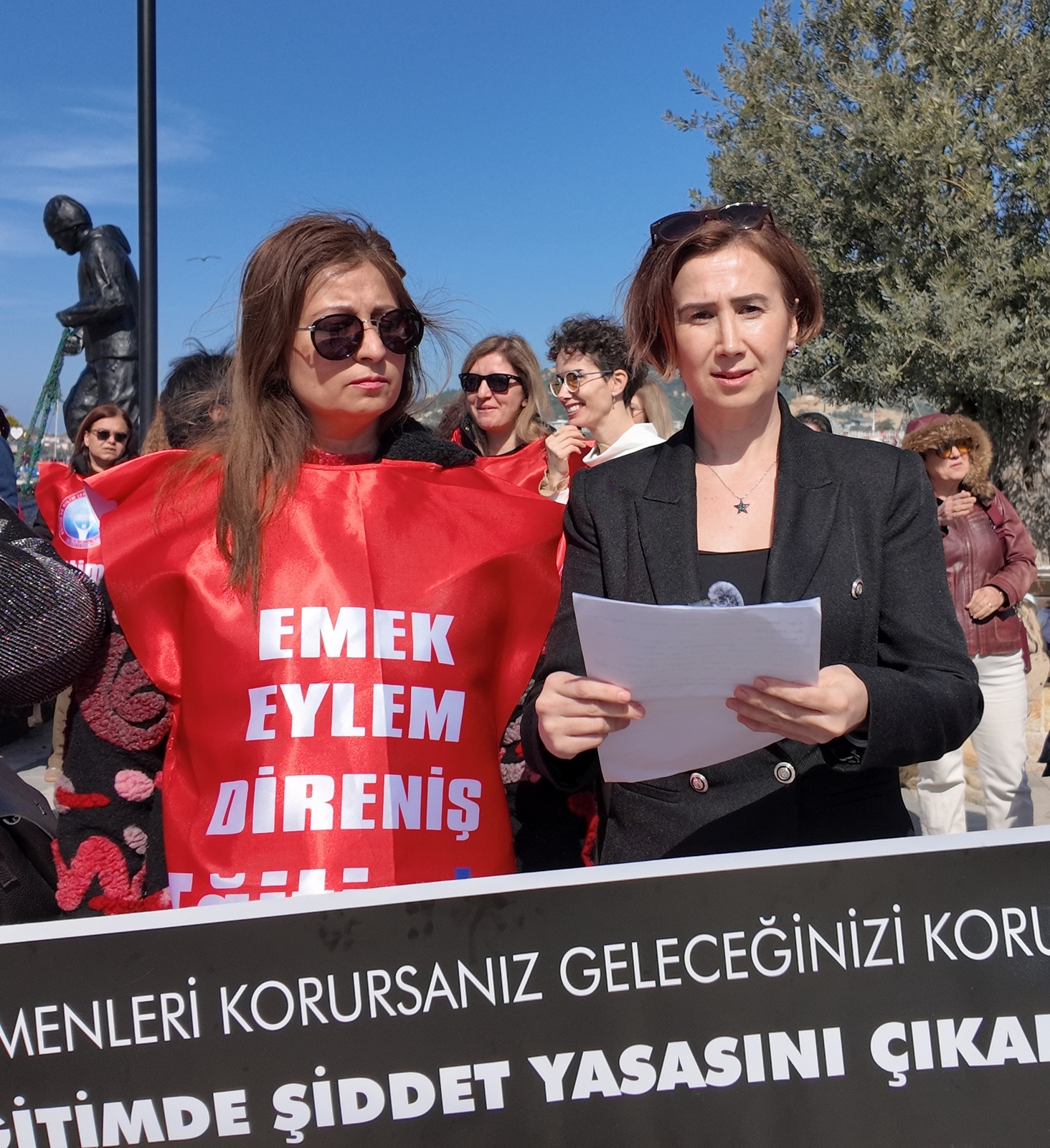 İzmir’in Foça İlçesi’nde Eğitim İş Sendikası mensubu öğretmenler İstanbul’da bir okulda öğretmen arkadaşlarının katledilmesini protesto etmek ve okulda can güvenliklerinin olmadığına dikkat çekmek için 3-4 Mart 2026 günleri derslere girmediler. Öğretmenler yaptıkları basın açıklamasında Milli Eğitim Bakanı Yusuf Tekin”e “okullardaki güvenlik zafiyetinin önlenmesi için daha kaç öğretmenin can vermesi gerekiyor” diye seslendiler.
