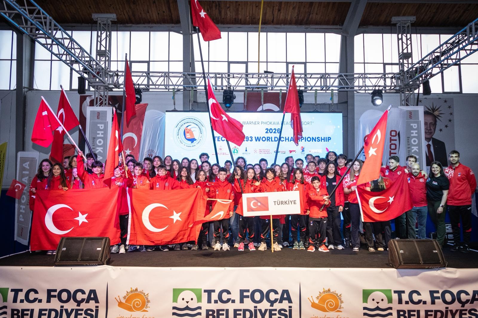 Foça’da ki Dünya Şampiyonası’nda yarışlar U13, U15, U17 ve Techno Plus kategorilerinde yarışlar 9 Nisan 2026 Perşembe gününe kadar devam edecek.