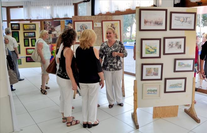 24 kursiyerin çeşitli teknikler kullanarak değişik konularda yaptığı pastel, akrilik yağlıboya, suluboya tablolar ilgiyle izlendi.