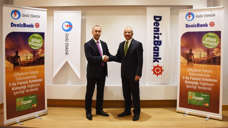 Tarım sektöründe %44 pazar payı ile özel bankalar arasında lider olan DenizBank ile İzmir ve Manisa illerinde görevli elektrik tedarik şirketi olarak hizmet sunan Gediz Elektrik önemli bir iş birliğine imza attı. Bu işbirliği kapsamında çiftçiler, Üretici Kartları ile Gediz Elektrik Müşteri İlişkileri Merkezleri’nden yapacakları ödemelerde 3 ay vade ve 0 faiz avantajı elde edebiliyor, otomatik ödeme talimatı verebiliyor ve faturalarını hasat dönemine erteleyebiliyorlar.