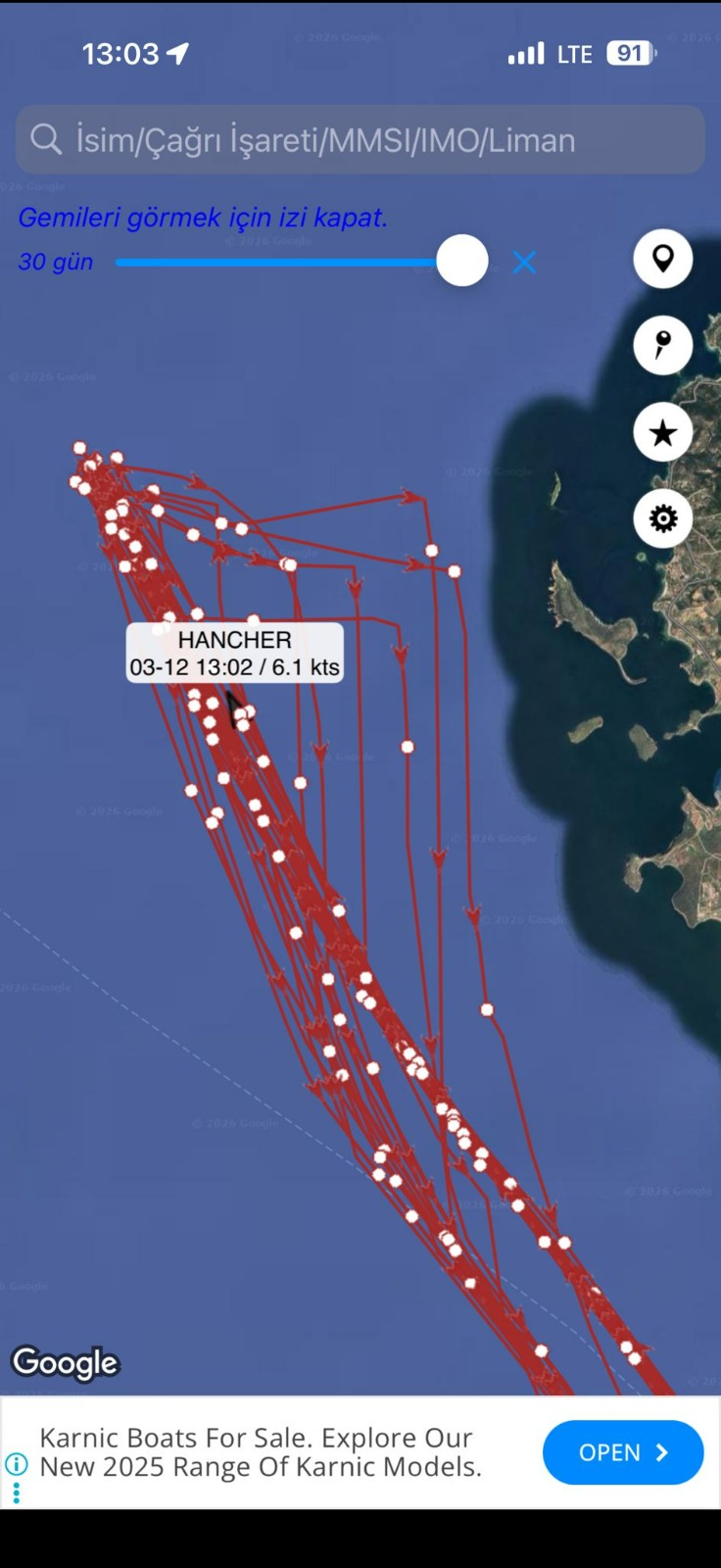 Balıkçı Necati Bozyar çamur taşıyan teknelerin mevkileri belli olmasın diye bazen AIS takip cihazlarını kapattıklarını ve körfezden hareket eder etmez kapaklarını aralayarak çamuru döke döke geldiklerini savundu. Necati Bozyar; “ Çamuru yükledikten ve belli bir yere geldikten sonra takip cihazlarını kapatıyorlar. Hava sert diye zaten daha çıkarken kapaklarının yarısını açıyorlar. Döke döke geliyorlar. Geçenlerde aynı şeyi yaşadık. Telsizden seslenmek zorunda kaldık. Bir taraftan gemiyi göremiyoruz. Kapatmış cihazı üstümüze üstümüze geliyor. Seslendik ondan sonra rota değiştirip aşağı tarafa gidip döktü döndü gitti. Bittik biz. Rahat çalışamıyoruz. Her gece ağ takımı avlama mı yapıyor, zarar mı yapıyor diye düşünerek çalışıyoruz. Ağları fazla fazla atmak zorunda kalıyoruz. Senelerdir çalıştığımız yerlerde, ağların içinde lastik çamur, kaya, poşetler, demirler aklınıza gelmeyecek pislikler çıkmaya başladı. Normal koordinatları verilen yere dökülse biz oradan uzak geçeriz. Bu sene abarttılar bu başka yere dökmeyi, mahvettiler bizi.”dedi.