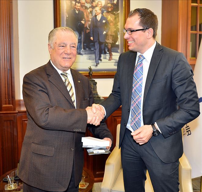 Türk-Alman dostluğuna ve ticari ilişkilerine katkı sağlayacak işbirliklerinin artırılması yönelik temaslarda bulunmak için İzmir´e gelen Almanya´nın Mittlerer Niederrhein Sanayi ve Ticaret Odası öncülüğündeki heyet, Büyükşehir Belediyesi´ni ziyaret etti. Mittlerer Niederrhein Sanayi ve Ticaret Odası Başkan Yardımcısı Wolfram Lasseur başkanlığındaki heyeti Büyükşehir Belediye Başkan Yardımcısı Dr. Sırrı Aydoğan kabul etti. Türkiye ve Almanya arasındaki ilişkinin iki devlet arasındaki ilişkiden daha ileri olduğunu belirten Aydoğan, ?Biz artık birbirini çok iyi anlayan iki milletiz. İzmir´de bu yıl Türk-Alman Dostluk Günleri´nin 9.sunu gerçekleştireceğiz? dedi.