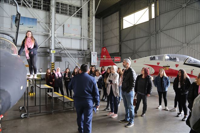 Dünya Havacı Kadınlar Haftası´nın bu yıl ki ana teması ?Havaalanında Kadın´ idi. Şube Saymanı Tülay Çetin bu sebeple sadece kız öğrencilerinin üzerlerinde pembe aksesuarla üsse giriş yapmalarını sağladı. Üs görevli personeli ile birlikte üs içerisinde müzeyi, uçak bakımlarının yapıldığı hangarı, simülatörü gezen bayan öğrenciler eğitim uçakları, jetler ve pilotluk mesleği hakkında bilgi aldılar ve soru yönelterek merak ettiklerini öğrendiler. Geziye öğrencilerle birlikte Menemen Anadolu Lisesi´nden Ozan Ağır(Öğretmen), Halide Gencer Mesleki ve Teknik Anadolu Lisesi´nden Özlem Apaçık(Öğretmen) THK Menemen Şube Başkan Yardımcısı Zeynep Büyükkoca katıldı.