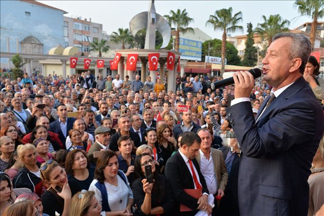 Hemşehrilerinin ?Menemen Senindir, Senin Kalacak? tezahüratları arasında konuşmasına başlayan Menemen Belediye Başkanı Tahir Şahin, ?Dile kolay, 20 yıl geçmiş, insanın hatası da var, sevabı da. Hatalarımızla, sevaplarımızla bu meydanı doldurmuşsunuz, ben size ölümüme kadar minnettar kalacağım? dedi.