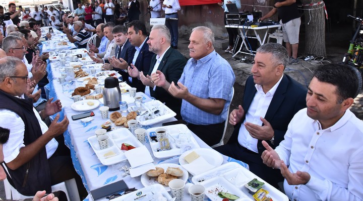 Menemen’deki esnaf ve sanatkârları buluşturan Ahi Sofrası, İlçe Müftüsü Mehmet Seven’in dua okumasıyla sona erdi.