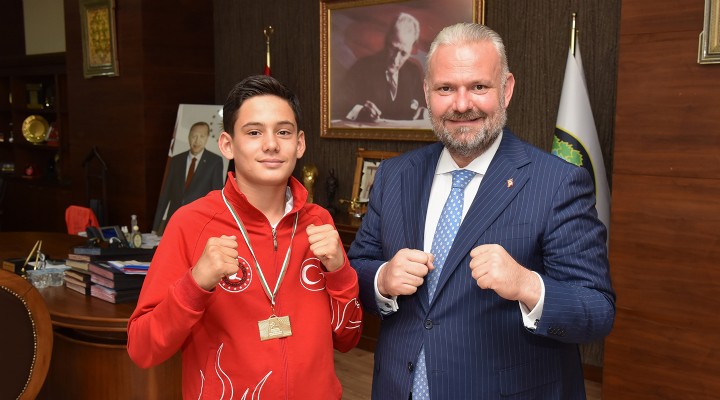 Bulgaristan’da yapılan Avrupa Şampiyonası’nda Wushu Kung Fu dalında altın madalyanın sahibi olan Adar Kalay, Menemen Belediye Başkan Vekili Aydın Pehlivan’a söz verdi. 13 yaşındaki Kalay, Aralık ayında Malezya’da yapılacak şampiyonadan Dünya Şampiyonu olarak döneceğini söyledi. Kalay’ı tebrik eden Pehlivan, “Kentimize ve Ülkemize Avrupa şampiyonu olarak dönmekle bizleri gururlandırdın. Ne mutlu bize. Çok çalışarak Dünya Şampiyonu da olacağından hiç şüphem yok. Menemen Belediyesi olarak her zaman yanındayız” dedi.