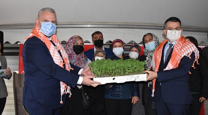 Konuşmaların ardından Bakan Pakdemirli, Yerli ve Milli Çeşitlerin Yaygınlaştırılması Projesi kapsamında Menemenli üreticilere sebze fidanı ve tohumu dağıtımı gerçekleştirdi.