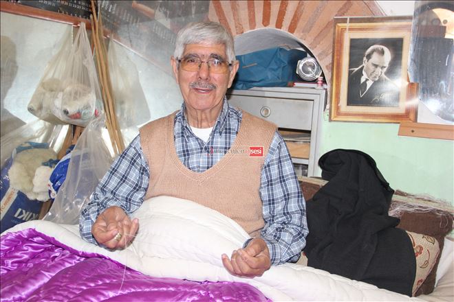 Mehmet Ünver: Birçok çırak geldi geçti ama bu mesleği yapan yok. Herkes bir tarafa gitti. Günümüzde bu iş karın doyurmuyor. Artık herkes sigortalı iş arıyor. Ben zaten şimdi başka birinin sigortasını ödeyemem. Yatak, yorgan, yastık yapılırdı çeyizlik için. Uzun yastık yapardık, hatta bir yastıkta kocasın lafı da oradan gelir. Saz, saman yastıklar vardı. Köylerde yer minderi kullanılırdı ekseri. Artık sünger çıktı. Şimdi her şey fabrikasyona döndü. Bizim işler bitti artık. Bu işin makinesini getirelim dedik bir dönem Almanya´dan, makine 25 metrekare yer istiyor makine büyük, 4 kişi çalışacak, 25-30 yorgan dikiyor. Ama o 25-30 yorganı nereye satacaksın. 4 tane de adam çalıştıracaksın. O işe de girmedik. Zaten 5-10 sene sonra fabrikasyon elyaflar çıktı. O zaman bizim işler tamamen bitti. Bir de var ki yorgan 5 kilo, 1 kilo da çarşafı gelir. 6 kilonun altında herkes yatamaz. Elyaf yorganlar 1.5 kilo, 1 kilo da nevresimi gelse. 2.5 kilo. Ama sağlıklısı bizim diktiğimiz yorgan. 10 sene oldu aşağı yukarı Rusya´dan paketler içinde yün geliyordu, salhanenin arkasında yün fabrikası vardı o yünleri orada yıkıyorlar, tarıyorlar, Hollanda´ya yolluyorlardı. Onlar yün yorgan ve yatağa dönmüşler 10 sene evvel. Biz elyaf arıyoruz. Elyaf yıkanmaz. Ama bir şey de var ki, bu yorganı hangi kadın eline iğne alıp çarşaflayacak şimdi. Şimdi nevresim var. Evler de doğalgazlı, fazla kalın istenmiyor. Nereden nereye atladık ama sen yorganı kuş deseni ile süslesen de kaybolup gidiyor nevresimin içinde. Oysa biz bir yorgan deseni için 3 gün uğraşırdık. Emeğin değeri yok artık. Gider elyaf yorgan alır, sana bunu diktirmez. Şu gördüğün yorganı da ahilik haftasında fuarda sergilemek için diktim. 2002´den 2015´e kadar bu fuarlara gittim. Kaybolmaya yüz tutmuş meslekler kapsamında bizim iş de. Bizler bu mesleğin son temsilcileriyiz.