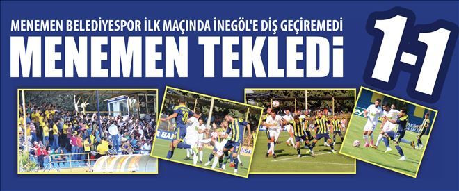 1-1. Evsahibi ekip 10. dakikada Gökhan Ünal´la öne geçti. Mert Hakan´ın sağdan yerden ortaladığı topa altıpasta Gökhan Ünal dokundu: 1-0. 33´te Cenk´in ara pasıyla buluşan Mert Hakan kaleci ile karşı karşıya pozisyonda topu üstten auta yolladı. 45+2´de İnegölspor skora denge getirdi. Emrah´ın pasında sol çaprazdan ceza sahasına sızan Emre Okur sert bir şutla kaleci Bayram´ı çaresiz bıraktı:1-1. 56´da Menemen penaltı kaçırdı. Erman´ın ortasında İnegölspor´dan Emrah ceza sahasında topa elle dokununca hakem beyaz noktayı gösterdi. Gökhan Ünal´ın atışında kaleci Şener gole izin vermedi.60´da Emre ortaladı, Kemal topu boş kale yerine dışarı gönderdi. 78´de Kemal´in sağdan çevirdiği topa Hacı Mustafa altıpas üzerinden vurdu, Efe´nin son anda araya girmesiyle meşin yuvarlak kornere çıktı. 90´da Yasin´in yaklaşık 25 metreden çektiği şutta top auta çıktı. Karşılaşma bu skorla bitti.