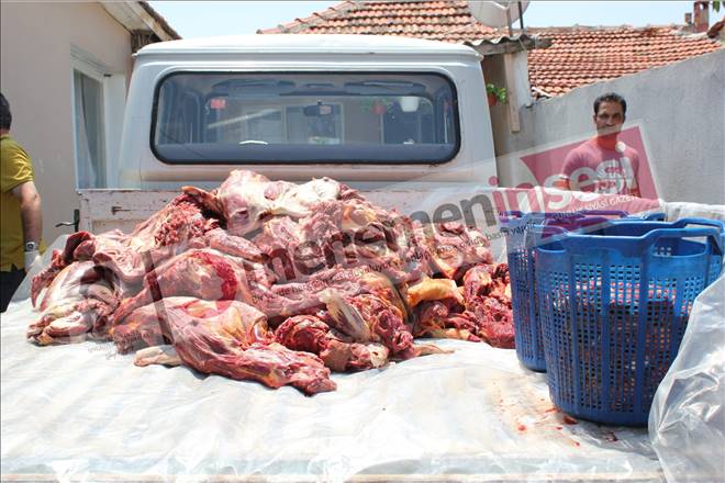 Evin ahırında kesilmeye hazır 6 adet at ve 1 adet eşek bulundu. Zabıta ekiplerince kamyonete yüklenen etler imha edilmek üzere başka bir alana götürüldü.