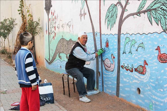 Menemen´de yaşayan 65 yaşındaki emekli dövmeci H.İbrahim Açık ikamet ettiği Asarlık mevkiindeki TOKİ evleri 343 sokakta bulunan boş duvarları resim ve motiflerle donatıyor. Küçük yaştan beri karakalemle insanların portrelerini yaparak resim sanatına başladığını ifade eden Açık, ?İnsanların hayatta başına her şey gelebilir. Ama yaşama bir yerden tutunmak gerekir. Emekliyim. Boş durmuyorum. Gençlere dövme sanatı ile iştigal ederek aile bütçesine katkı koyuyorum. İkamet ettiğim mahallede yaşayan vatandaşlar Halil bey senin elinden gelir şu bizim karşımızdaki istinat duvarını pis görüntüsünden kurtarmak için resim yapar mısın teklifinde bulundular. Çevre bana destek verdi. 15 metre uzunluğunda ve 4 metre yüksekliğinde çıplak duvarı yağlı boya ile doğayı anlatan görüntülerle motifliyorum. Doğanın sesi olmaya ve sanatla yaşamı renklendirmeye devam edeceğim? dedi.