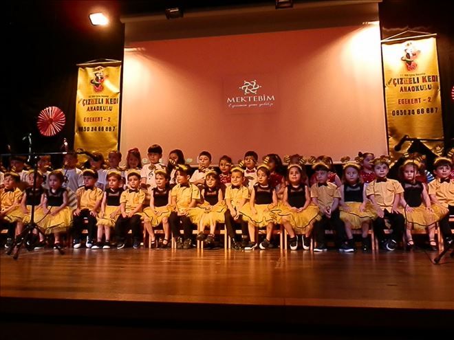 Menemen´e bağlı Egekent-2 Mahallesinde 3-5 yaş grubu miniklerle eğitim faaliyetlerini sürdüren Çizmeli Kedi Anaokulu muhteşem yılsonu etkinliğiyle tatile merhaba dedi. Çiğli Mektebim Koleji salonlarında yıl boyu öğrendikleriyle ailelerin karşısına çıkan minikler alkışlarla gözyaşlarının birbirine karıştığı bir program sundular.