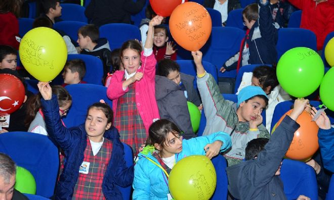 Enerji Tasarrufu Haftası etkinliklerine katılan öğrenciler, farkındalık yaratmak amacıyla ellerindeki balonlara günün anlamına ilişkin sözler yazdılar.