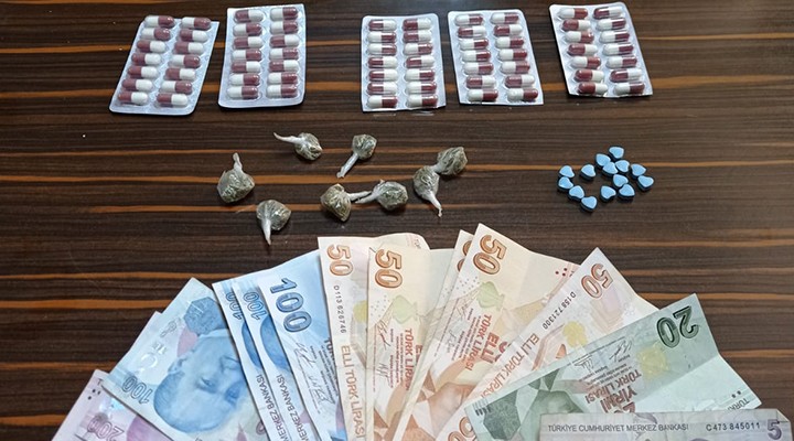 Ü.Ç’nin evinde yapılan aramalarda güvercin kafesine gizli satışa hazır 8 adet fişek esrar maddesi, 70 adet lyrika uyuşturucu maddesi, 14 adet mavi renkli hap ve uyuşturucu ticaretinde kullanılan 1075 tl ele geçirildi.