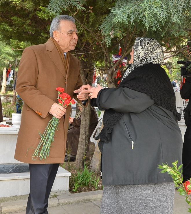 İzmir Büyükşehir Belediye Başkanı Aziz Kocaoğlu, 18 Mart Şehitleri Anma Günü ve Çanakkale Deniz Zaferi”nin 100. Yıldönümü nedeniyle Kadifekale Şehitliği’nde düzenlenen törene katıldı. Başkan Aziz Kocaoğlu törenin ardından İzmir Valisi Mustafa Toprak ve Ege Ordu Komutanı Orgeneral Galip Mendi ile birlikte şehit mezarlarını ziyaret ederek karanfil bıraktı.