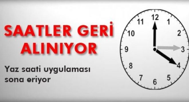 31 Mart tarihinde başlayan yaz saati uygulaması 26 Ekim’de bitiyor. Bu tarihte saatler, gece 04.00’ ten itibaren 1 saat geri alınacak. Yaz saati uygulaması gün ışığından daha fazla yararlanmak için uygulanıyor.